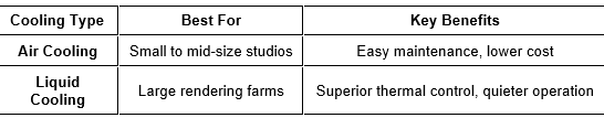 Long renders aren’t just about speed — they’re about survival. Thermal throttling can ruin a deadline faster than a missed frame.