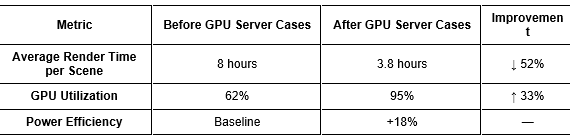 Example 2: Independent 3D Artist (Madrid) Using a 4U GPU case, architect Maria Alvarez brought rendering in-house — achieving near-studio output without outsourcing to render farms.